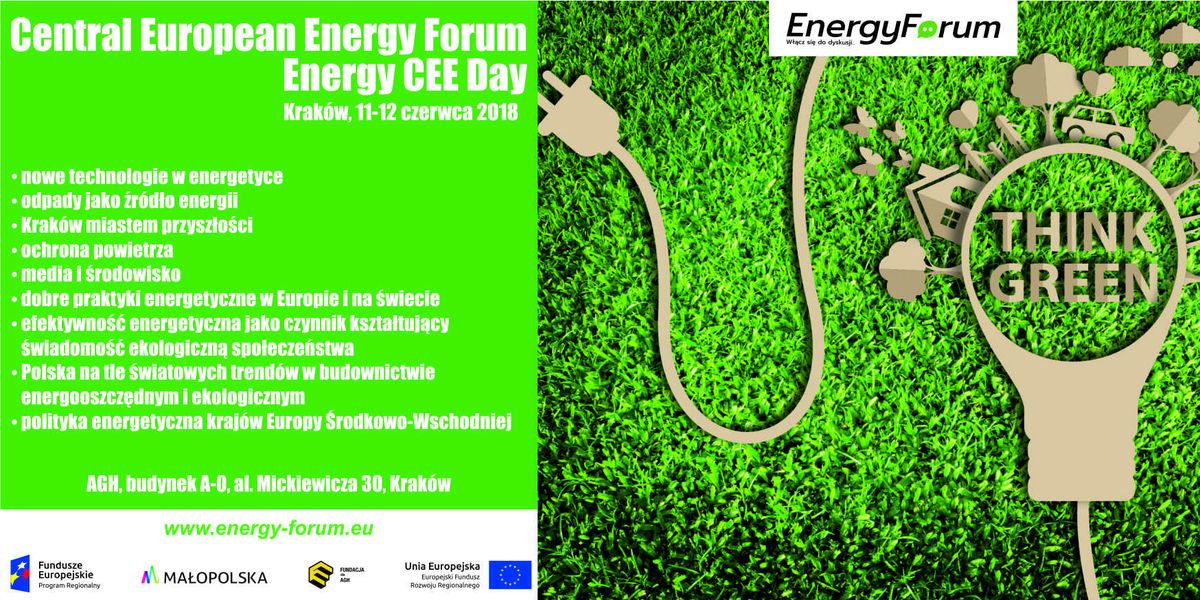 Central European Energy Forum – Energy CEE Day jest projektem realizowanym przez Fundację dla Akademii Górniczo – Hutniczej im. Stanisława Staszica w Krakowie w ramach dofinansowania z Regionalnego Programu Operacyjnego Województwa Małopolskiego na lata 2014 – 2020. Celem projektu jest zorganizowanie cyklu Konferencji naukowo – biznesowych oraz utworzenie portalu internetowego, które umożliwią promocję innowacyjności i pozwolą na wzmocnienie współpracy miedzy instytucjami nauki i biznesu. Bo pieniądze coraz bardziej lubią czyste środowisko.