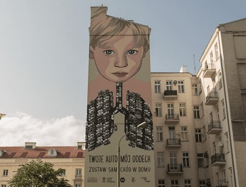 Najnowszy mural antysmogowy powstał w Warszawie, nieopodal szpitala dziecięcego. Lokalizacja wydaje się nieprzypadkowa. Ścianę budynku przy ulicy ul. Oboźnej 11 zdobi wizerunek małego chłopca, którego płuca to parkingi i miejskie ulice wypełnione ściśniętymi obok siebie samochodami. Hasło muralu jest dość jednoznaczne i brzmi: „Twoje auto, mój oddech. Zostaw samochód w domu”.