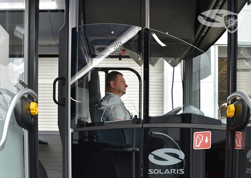 Solaris wypracował specjalne pakiety zwiększające bezpieczeństwo pasażerów i kierowców w autobusach. Dezynfektory, systemy komunikacji z kierowcą i zamknięta kabina to tylko niektóre z tych rozwiązań.