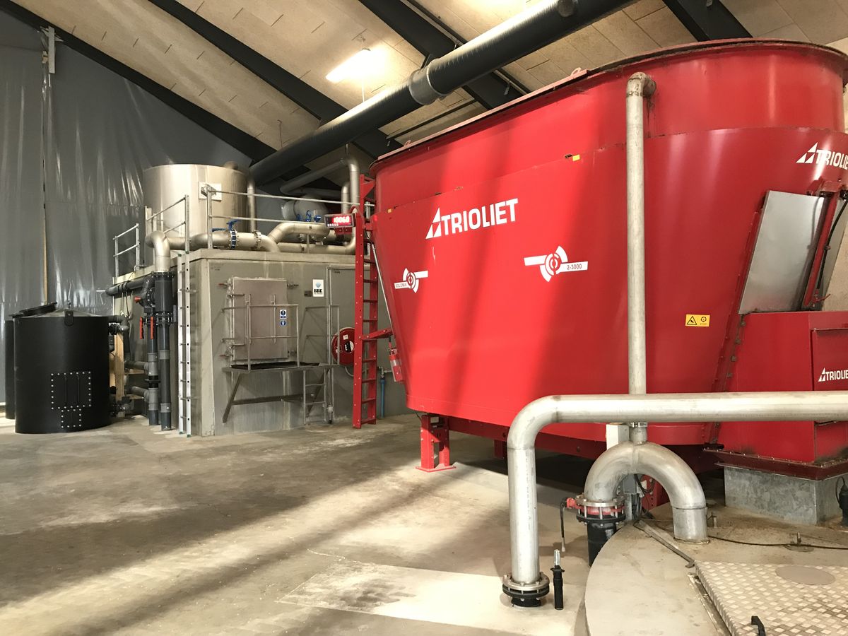 Wśród dodatków do gnojowicy, pojawia się kukurydza, pulpa ziemniaczana, ziarna, a także resztki z mleczarni. Odpowiednie proporcje (ok. 10–15 proc.) sprawiają, że proces fermentacji biogazowej przebiega bez najmniejszych kłopotów. Wszystko trafia do podajnika, z którego substrat jest podawany do zbiornika, w którym miesza się go z gnojowicą.