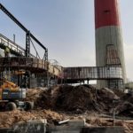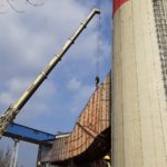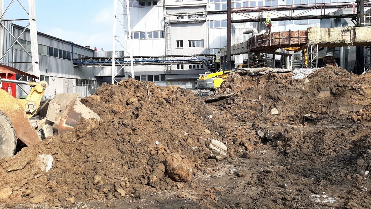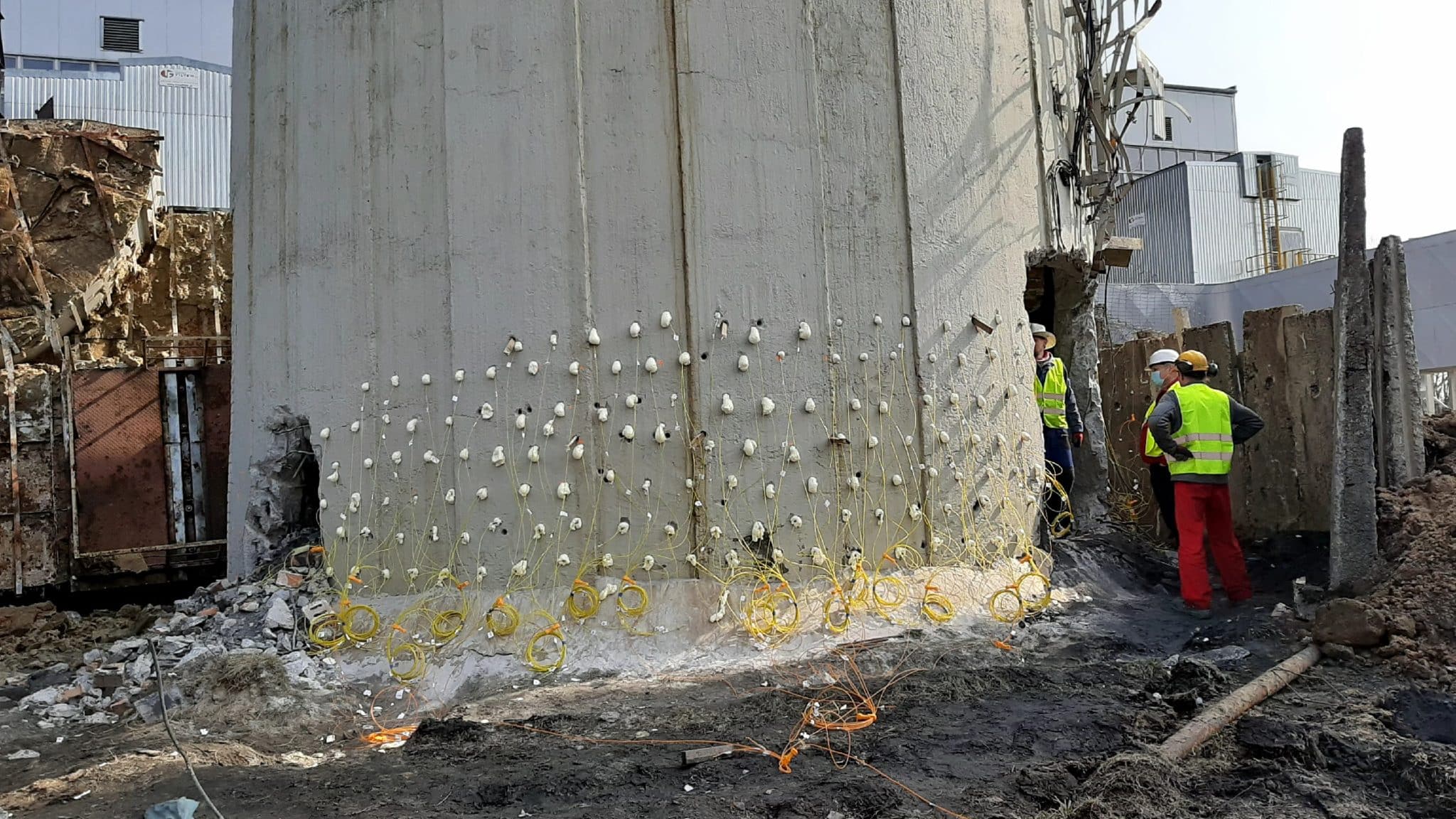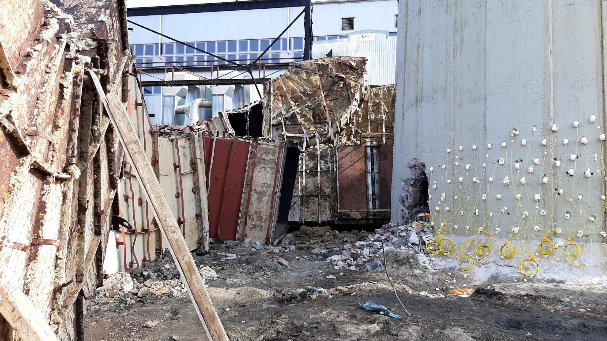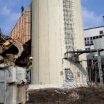 Obiekt został wyburzony metodą strzałową, co pozwoliło na szybkie i bezpieczne położenie komina.