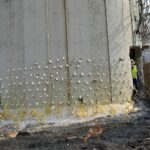 – W tym celu użyliśmy 25 kg dynamitu rozmieszczonego w 400 otworach o średnicy 3 cm każdy, nawierconych w strukturze obiektu w siedmiu rzędach na wysokości ok. 2 metrów – informuje inż. Krzysztof Dymek z firmy zajmującej się wyburzeniem. – Dzięki takiemu działaniu wykruszono beton ściany nośnej podstawy komina i położono go precyzyjnie na przygotowanym placu, na którym usypano wcześniej dwa wały amortyzujące uderzenie padającego emitora – uzupełnia inż. Dymek.