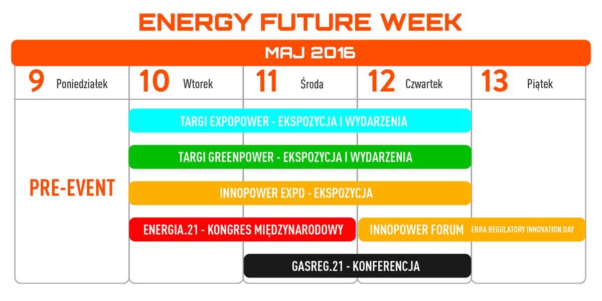 Energy Future Week to cykliczne konferencje, seminaria i ekspozycje przygotowane nie tylko z myślą o osobach z branży energetycznej, ale też dla wszystkich interesujących się tematyką inteligentnej energetyki i innowacyjnej gospodarki.W ramach EFW odbędą się: