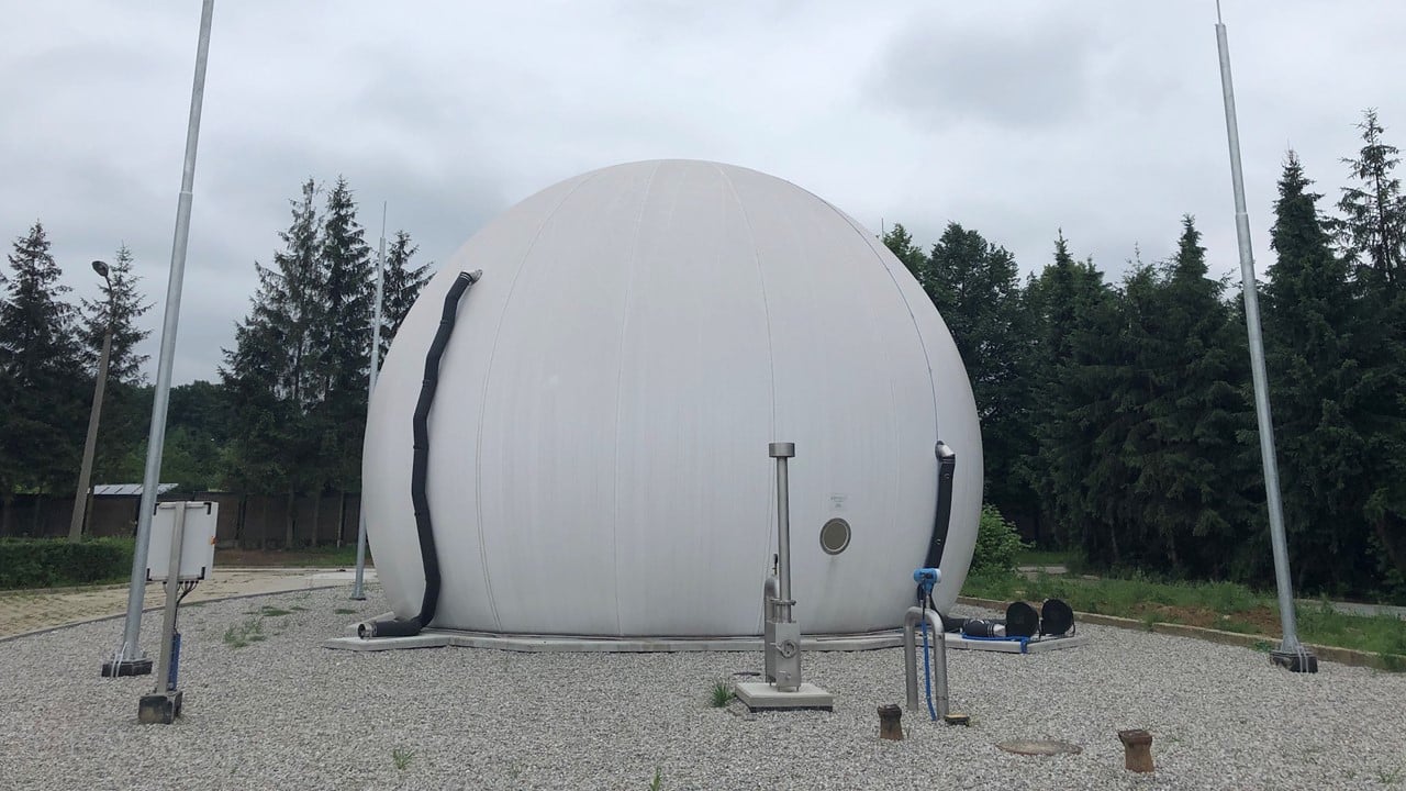 • montaż prefabrykowanego, dwumembranowego zbiornika na biogaz o pojemności 700 m3,