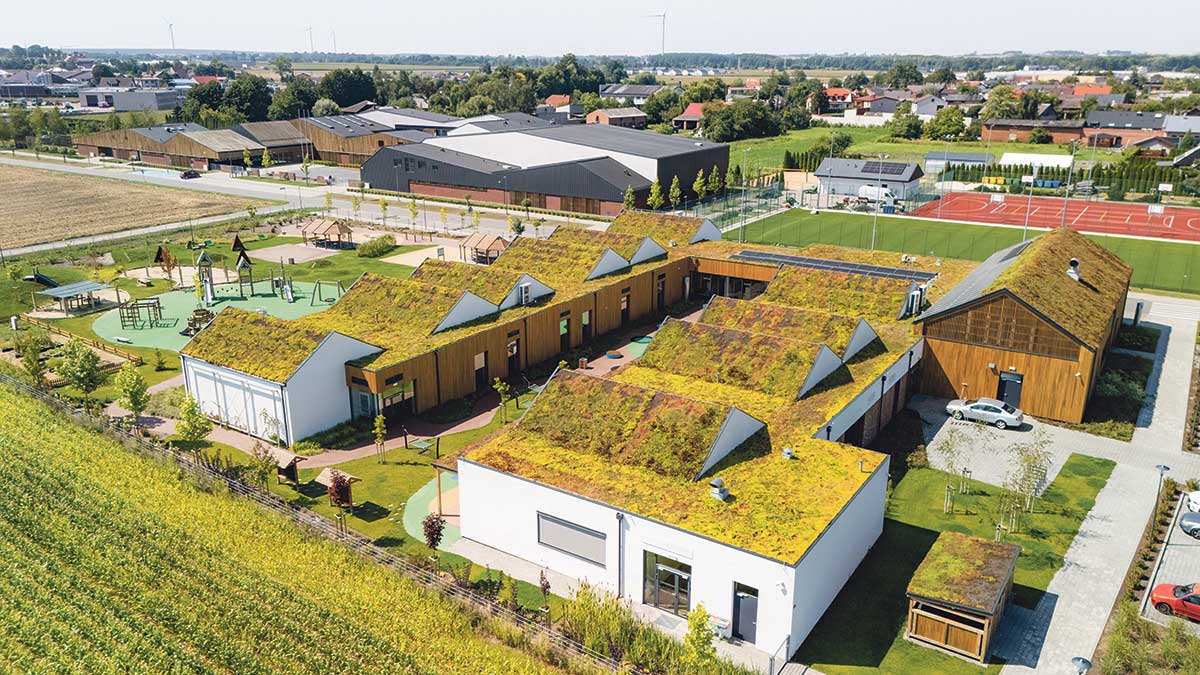 W wielkopolskim Baranowie działa jedno z najciekawszych w regionie przedszkoli – nie tylko pod względem architektury, ale i zastosowanych rozwiązań prośrodowiskowych. Prawdziwą wizytówką obiektu jest zielony dach, który umożliwia retencję wody, zwiększa izolacyjność cieplną, a na dodatek sprzyja bioróżnorodności.