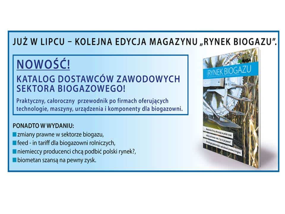 Lipcowy „Rynek Biogazu” jest już na rynku. Integralną częścią wydania jest katalog „Dostawców zawodowych sektora biogazowego”. Teraz dostępny online – do ściągnięcia na komputer, tablet lub smartfon.