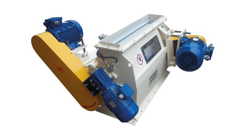Wszystkie urządzenia zostały zaprojektowane i wykonane przez firmę Testmer. Pellet przeznaczony do kruszenia dostarczany jest do kruszarki dwuwalcowej typu KGR stanowiącej główny element linii (na zdj.). Szerokość szczeliny między walcami można regulować, co pozwala uzyskiwać materiał o różnej wielkości cząstek. Kruszarka decyduje o wydajności całej linii. Im większe gabaryty urządzenia i większa moc silnika tym wydajność wzrasta.