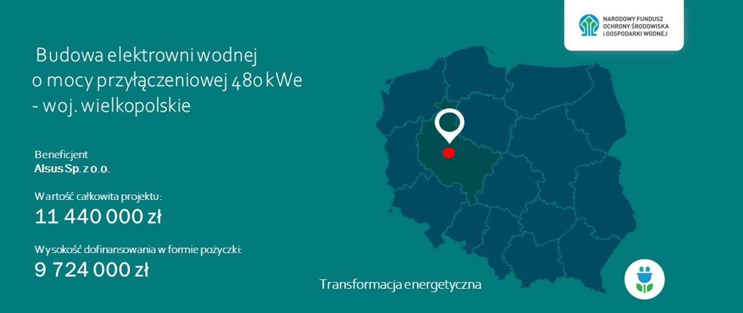 Wsparcie finansowe z NFOŚiGW dla spółki Alsus pozwoli wybudować Małą Elektrownie Wodną (MEW) przy stopniu wodnym nr 13 Walkowice na rzece Noteć na terenie woj. wielkopolskiego. Ponad 9,7 mln zł preferencyjnej pożyczki na ten cel zostanie przyznane z programu priorytetowego „Energia Plus”.