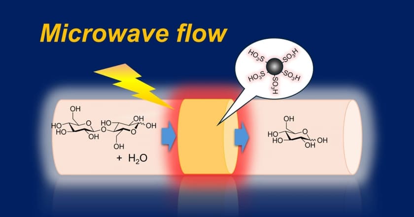 Badacze z Uniwersytetu Kiusiu w Japonii stworzyli urządzenie łączące w sobie katalizę i technologię znaną z mikrofalówek. W efekcie hydroliza następuje jako proces ciągły, w którym celobioza (disacharyd) jest przepuszczana przez sulfonowany katalizator węglowy podgrzewany mikrofalami. Proces powoduje, że celebioza rozpada się na glukozę, przez co powstaje monosacharyd.
