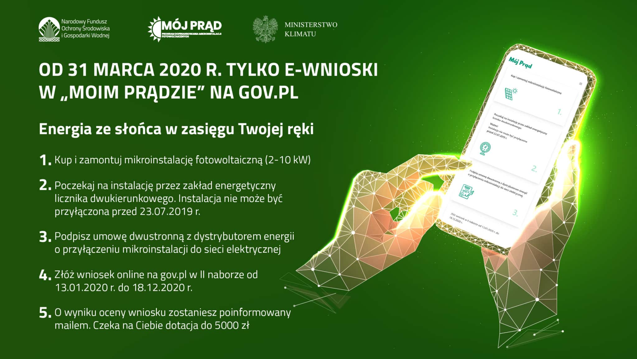 Tylko e-wnioski w programie „Mój Prąd” już od 31 marca br. Dzięki temu skróci się także czas oczekiwania na pieniądze.