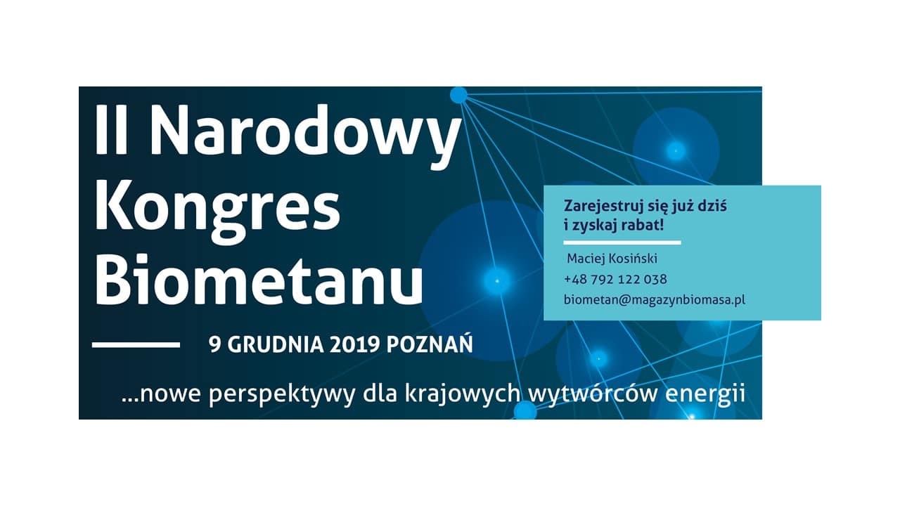 Grudniowy II Narodowy Kongres Biometanu to druga edycja konferencji. – Czas żeby branża biometanowa w Polsce wystartowała. Rok 2019 może okazać się w tym zakresie przełomowy – komentuje Jolanta Kamińska ze spółki BMG. – Zainteresowanie biometanem jest w kraju coraz większe. Nie tylko wśród biogazowników szukających nowych możliwości biznesowych, ale także wśród sektora transportowego, koncernów paliwowych i przemysłu oraz uczestników systemu EU ETS – dodaje J. Kamińska. Grudniowa konferencja odbędzie się w dniach 9-10 grudnia w Poznaniu, w Hotelu Mercure.