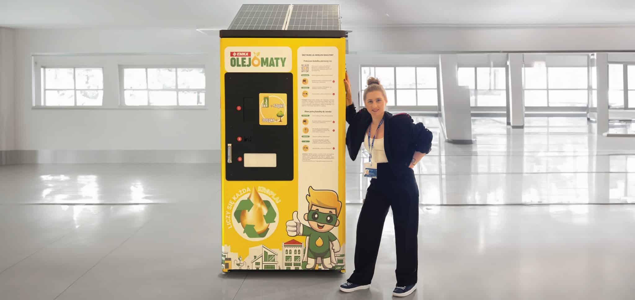 Jest to urządzenie, która najpierw wydaje puste butelki na zużyty olej, a następnie przyjmuje wypełnione nienadającym się już do użycia tłuszczem. Olejomat został zaprojektowany z myślą o ogólnopolskim systemie zbiórki zużytego oleju kuchennego. Zasilany za pomocą gniazda 230 V lub paneli fotowoltaicznych, jest w stanie przyjąć około 150 specjalnie przygotowanych, pełnych butelek. Urządzenie jest ponadto wyposażone w skaner kodów QR na zewnątrz maszyny, służący do komunikacji z aplikacją na telefon oraz drugi skaner kodów QR, umieszczony wewnątrz maszyny, gotowy do skanowania kodów na nakrętce dedykowanej do systemu butelki.
