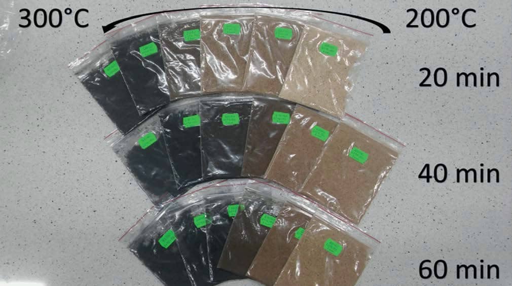 Podczas toryfikacji biomasa (tu Oxytree) jest poddawana oddziaływaniu temperatury z zakresu od 200 do 320°C w atmosferze ubogiej w tlen.