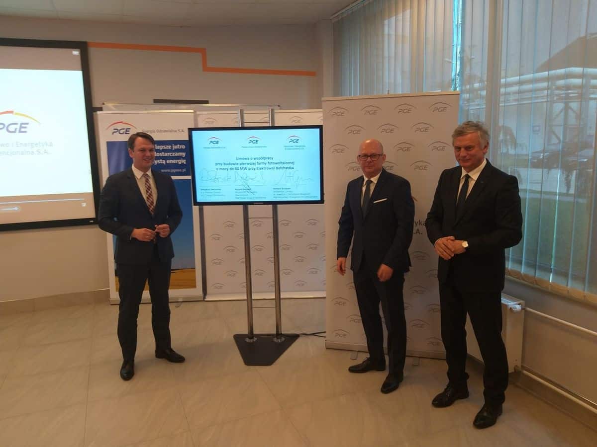 PGE Energia Odnawialna oraz PGE Górnictwo i Energetyka Konwencjonalna podpisały umowę o współpracy przy realizacji budowy instalacji fotowoltaicznych o powierzchni blisko 100 ha przy Elektrowni Bełchatów. Planowana inwestycja pozwoli zwiększyć moc zainstalowaną OZE w Grupie PGE nawet o 60 MW.