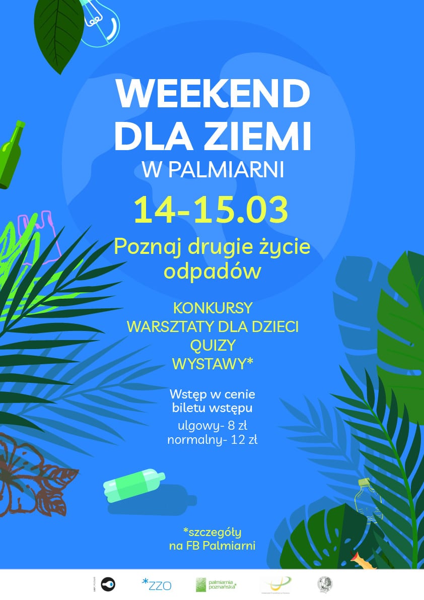 Na najbliższy weekend (14-15 marca) Poznańska Palmiarnia proponuje szereg atrakcji dla dzieci i dorosłych. Przygotowany wspólnie z Zakładem Zagospodarowania Odpadów „Weekend dla Ziemi’’ przybliży odwiedzającym palmiarnię tematykę segregacji śmieci. Organizatorzy przygotowali wiele atrakcji m.in. warsztaty dotyczące segregacji śmieci, konkursy kolorowania ekologicznych toreb oraz liczne quizy dla najmłodszych.