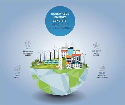 Zwiększenie udziału źródeł odnawialnych do 36 proc. do 2030 r. może zwiększyć światowy PKB o 1,3 biliona dolarów czyli 1,1 proc. wynika z najnowszego raportu „Renewable Energy Benefits: Measuring the Economics” opublikowanego przez Międzynarodową Agencję Energii Odnawialnej (IRENA).