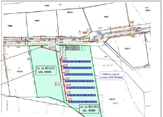 wytwórca energii elektrycznej z odnawialnych źródeł energii zobligowany jest przedłożyć oryginał lub poświadczoną kopię schematu instalacji odnawialnego źródła energii ze wskazaniem urządzeń służących do wytwarzania energii elektrycznej oraz urządzeń służących do wyprowadzenia mocy, wchodzących w skład tej instalacji, z oznaczeniem lokalizacji urządzeń pomiarowo-rozliczeniowych oraz miejsca przyłączenia tej instalacji do sieci elektroenergetycznej, naniesionych na mapę poglądową uwzględniającą numery ewidencyjne działek i obrębów.