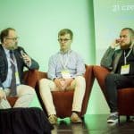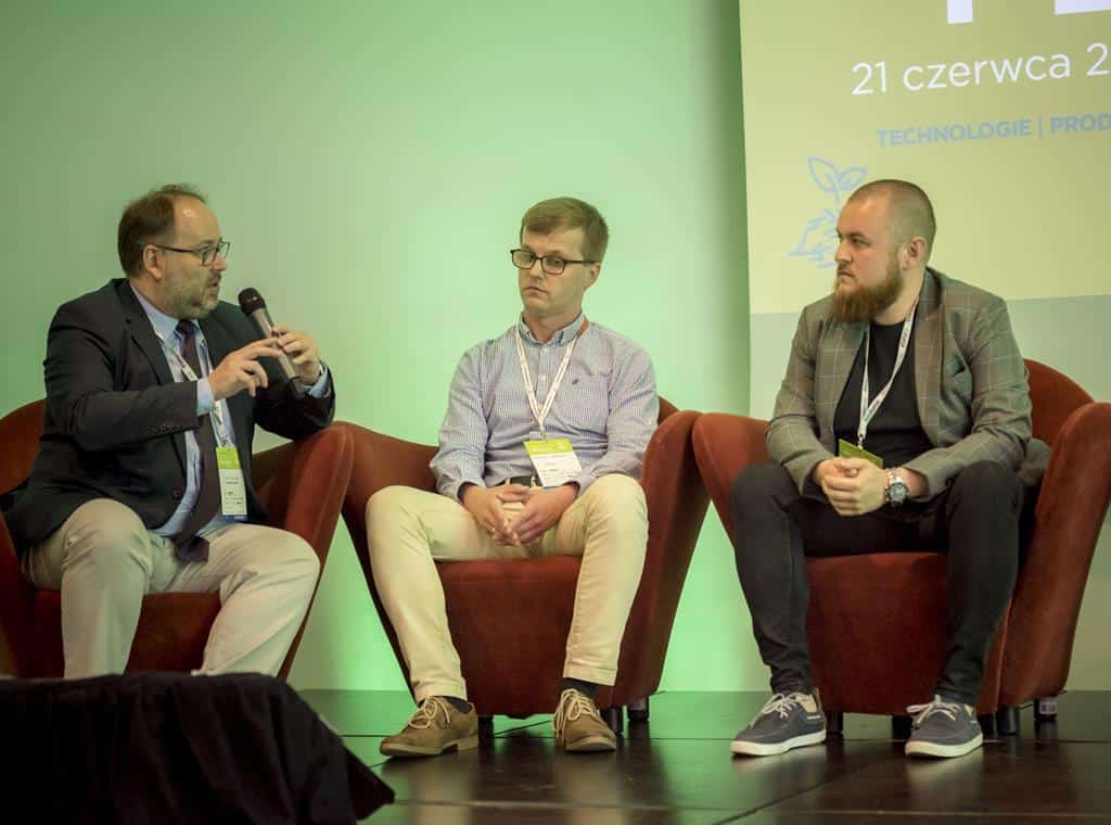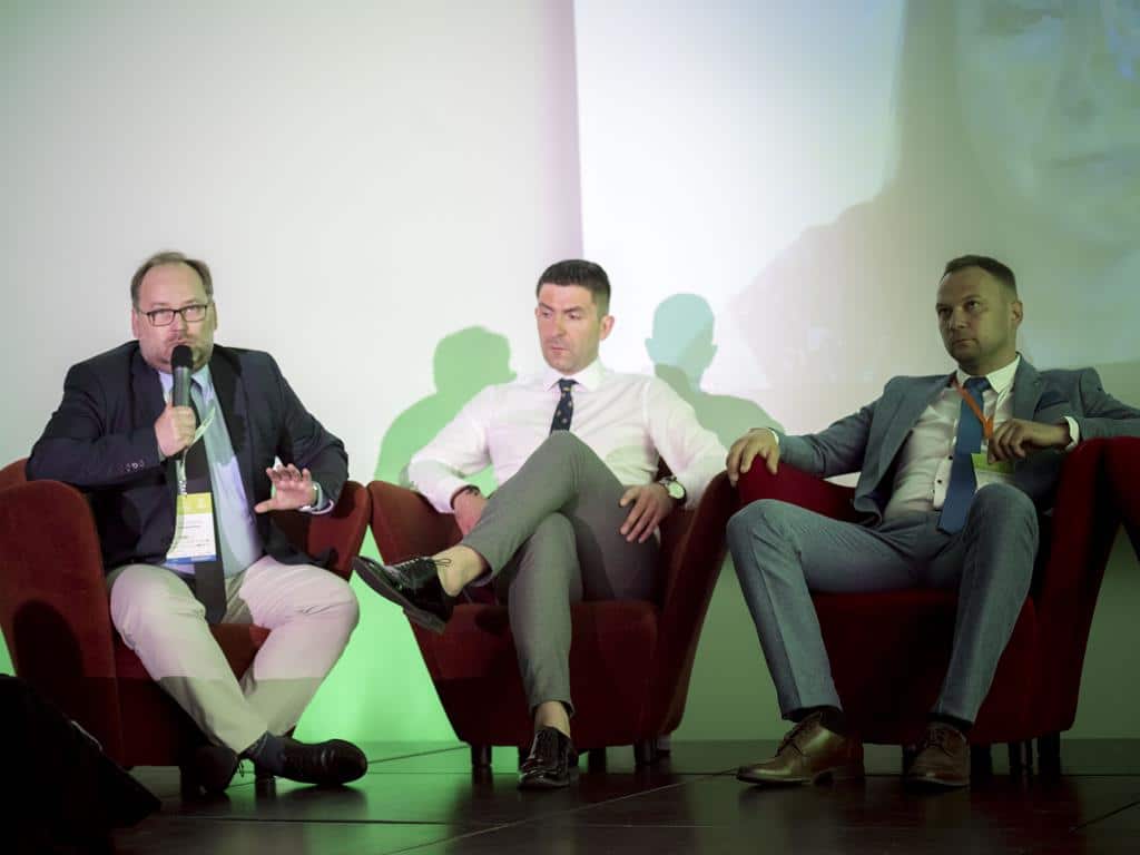 Debata dotyczące raportu pelletowego. Od lewej: Marcin Menzel – BTI Gumkowski/KIPI, Mariusz Superson – Supfol, Marcin Podsiadło – Bio Energy Group. W rozmowie udział wzięła także Agnieszka Sosnowska z Ministerstwa Klimatu i Środowiska