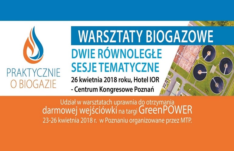Już w kwietniu kolejna edycja Warsztatów biogazowych – Praktycznie o biogazie. 26 kwietnia 2018 roku w Hotelu IOR – Centrum Kongresowe Poznań, poruszymy najważniejsze kwestie związane z produkcją biogazu.